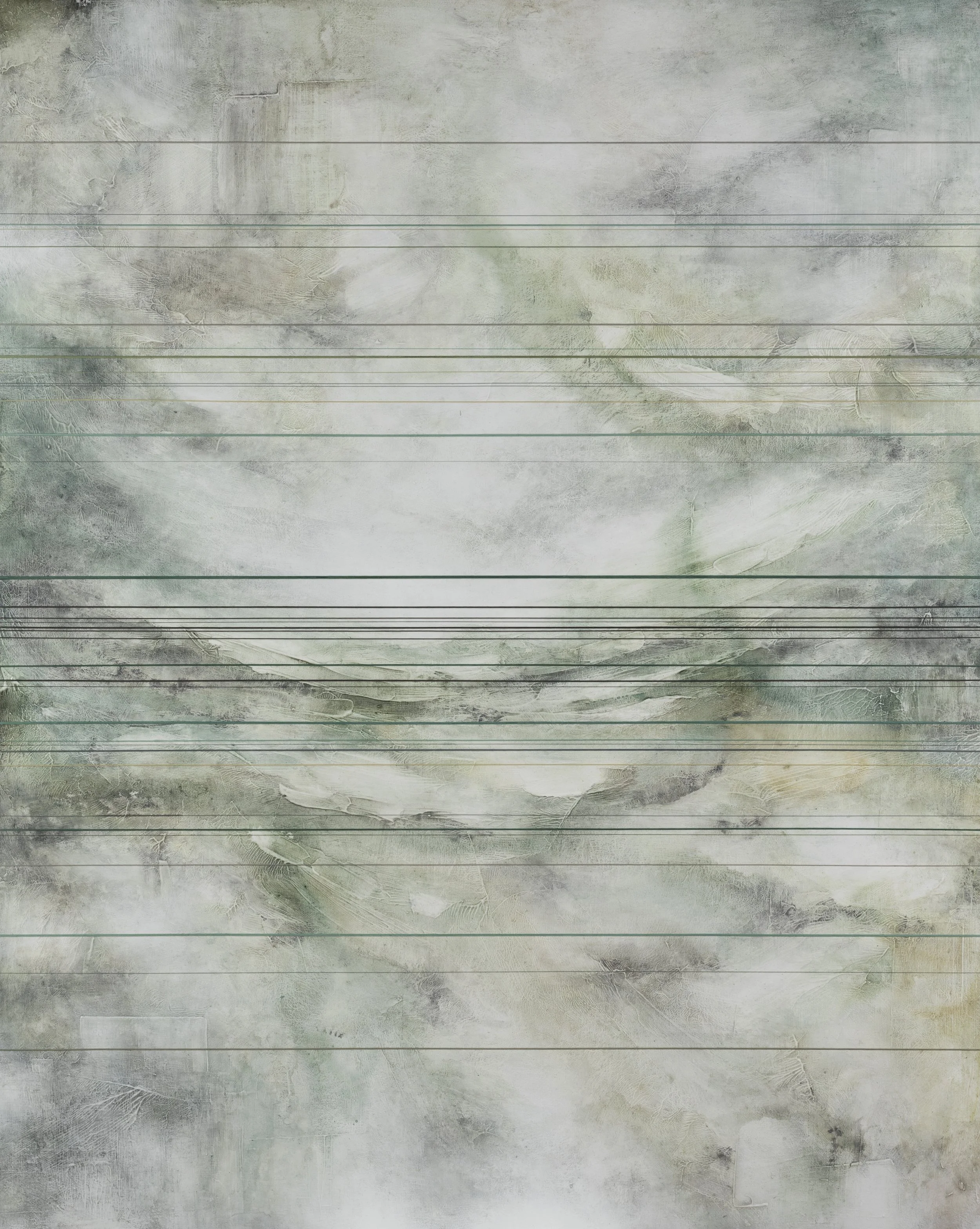 Inspired by movement and texture found in nature, “Light On The Water, Gleams” is an original painting created with thread, ink, acrylic and graphite on wood panel.